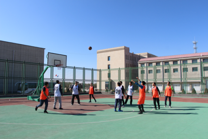 上圖為機(jī)關(guān)隊與眾利惠農(nóng)隊激烈的籃球賽