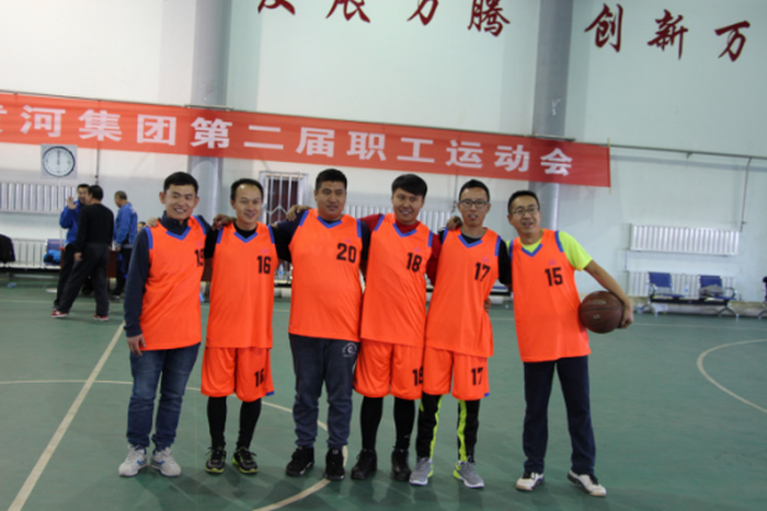上圖為籃球比賽前四名合影 一等獎千里山煤焦化隊 二等獎眾利惠農(nóng)隊 三等獎包鋼萬騰隊 四等獎萬晨化工隊
