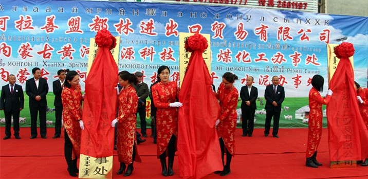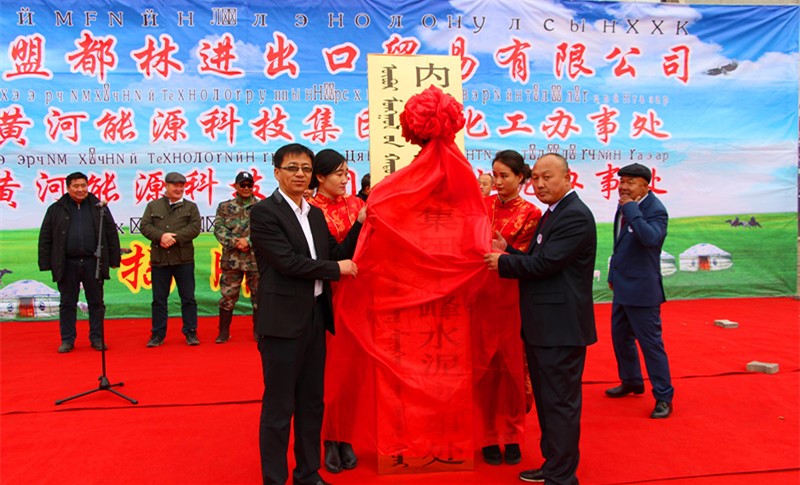 2016年11月18日,內(nèi)蒙古黃河能源科技集團(tuán)煤化工、千峰水泥駐阿拉善盟都林進(jìn)出口貿(mào)易公司辦事處揭牌儀式,在美麗富饒的烏拉特草原甘其毛道口岸隆重舉行。