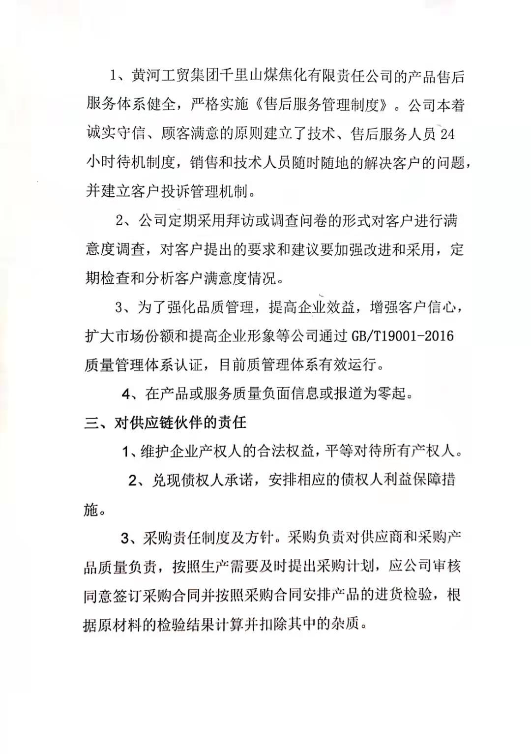 內(nèi)蒙古黃河工貿(mào)集團(tuán)千里山煤焦化有限責(zé)任公司社會(huì)責(zé)任報(bào)告