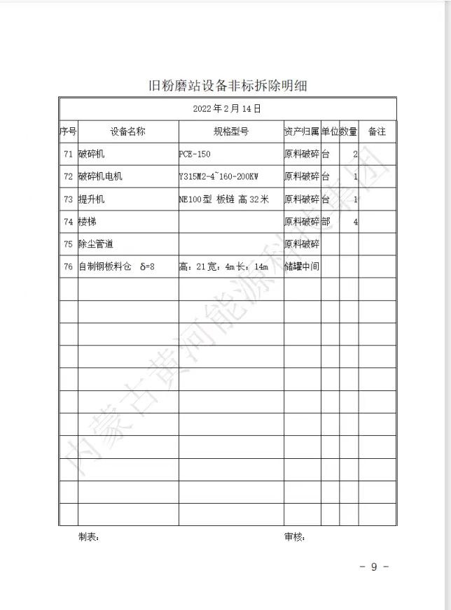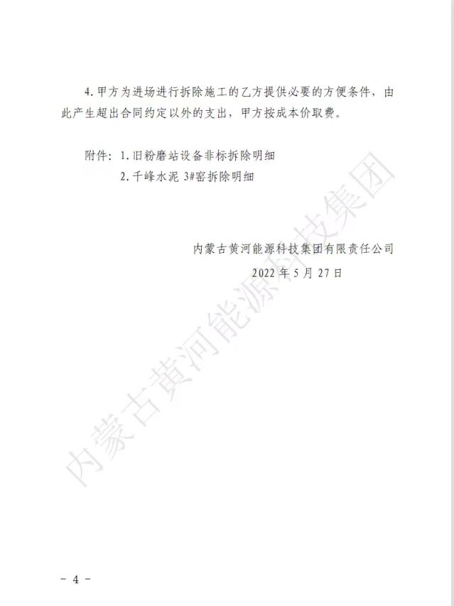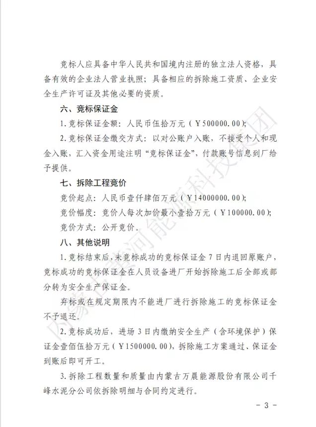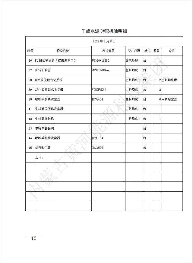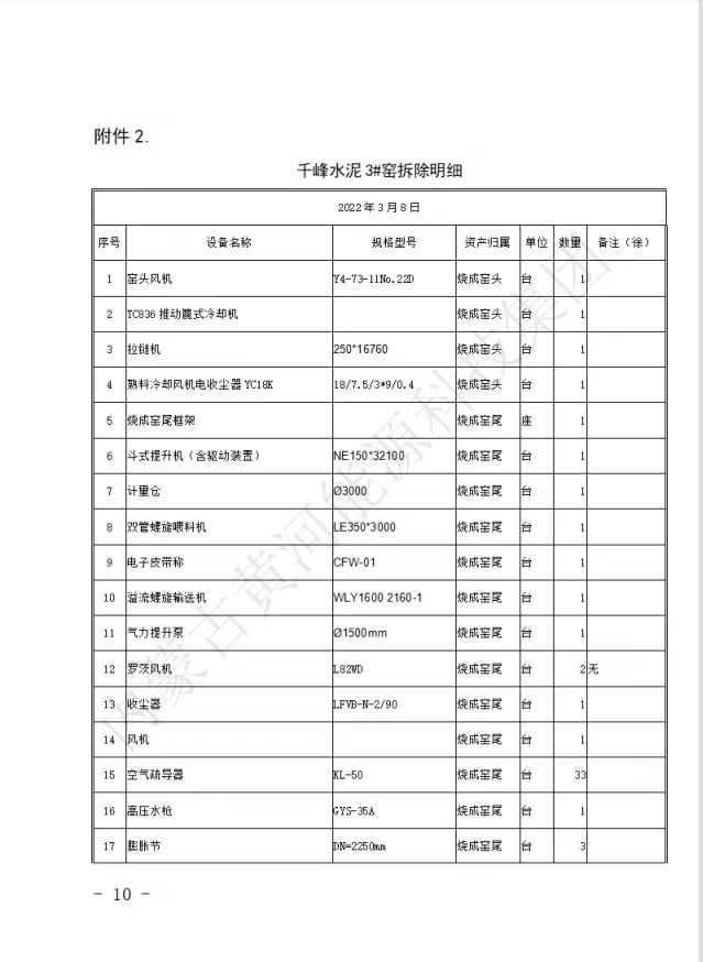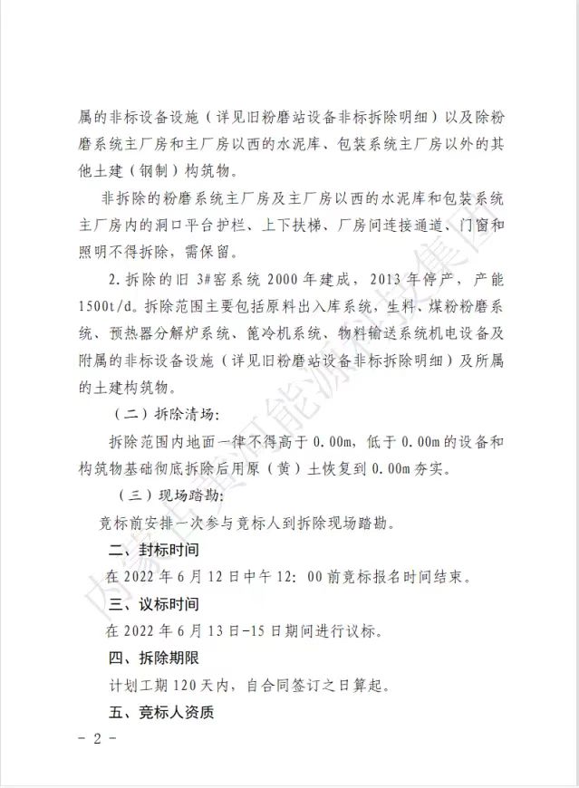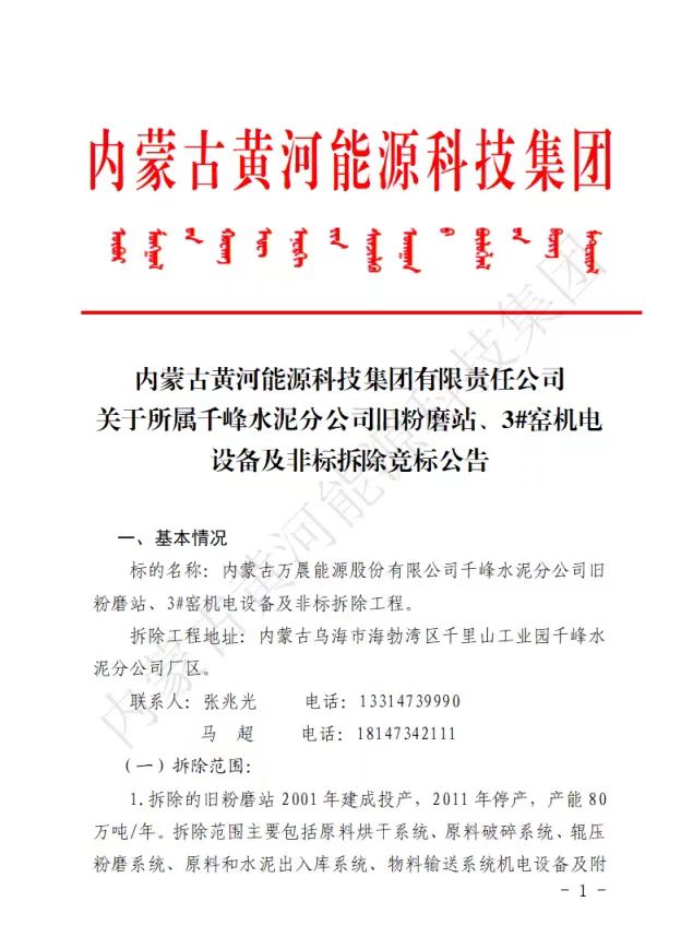 內(nèi)蒙古黃河能源科技集團關(guān)于所屬千峰水泥分公司舊粉磨站、3#窯機電設(shè)備及非標(biāo)拆除競標(biāo)公告