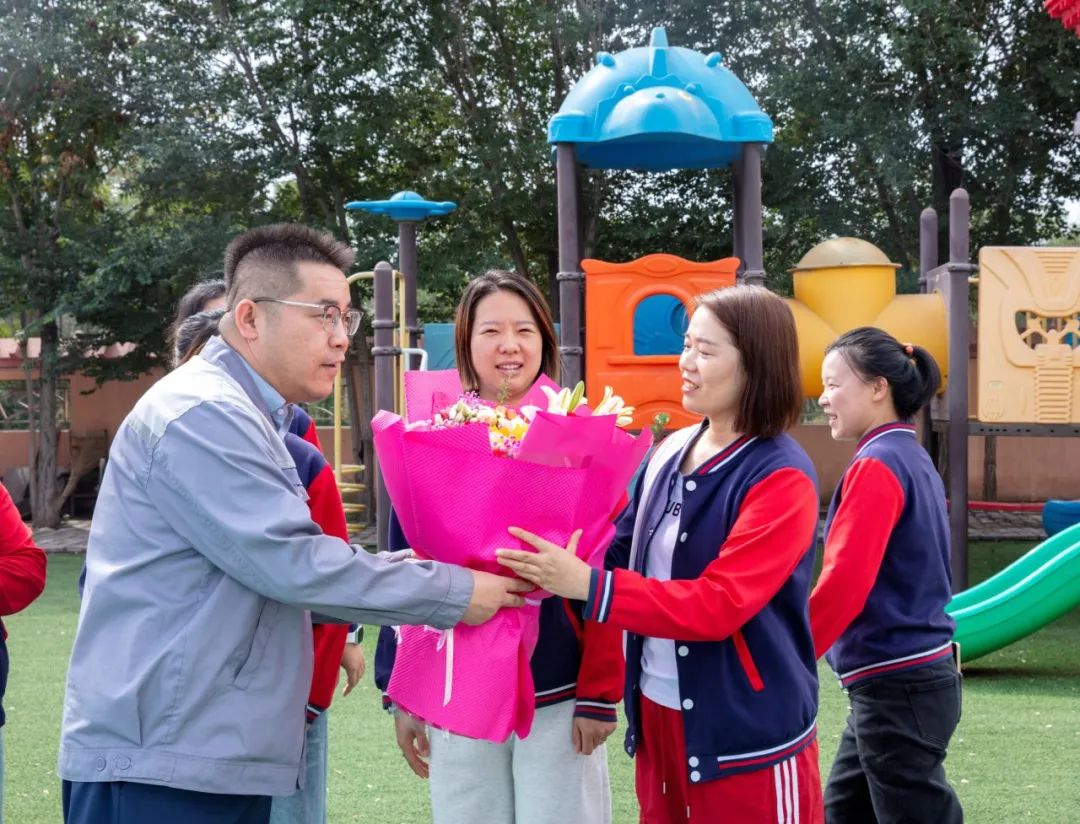 金秋九月,桃李花開(kāi),教師節(jié)如期而至。在這個(gè)特別的日子里,內(nèi)蒙古黃河集團(tuán)黨委副書(shū)記、行政總監(jiān)李錦榮受集團(tuán)黨委書(shū)記和董事長(zhǎng)委托,帶領(lǐng)黨辦、工會(huì)、行政到黃河集團(tuán)幼兒園,為兢兢業(yè)業(yè)的教師們送上教師節(jié)的節(jié)日祝福與鮮花和慰問(wèn)金。