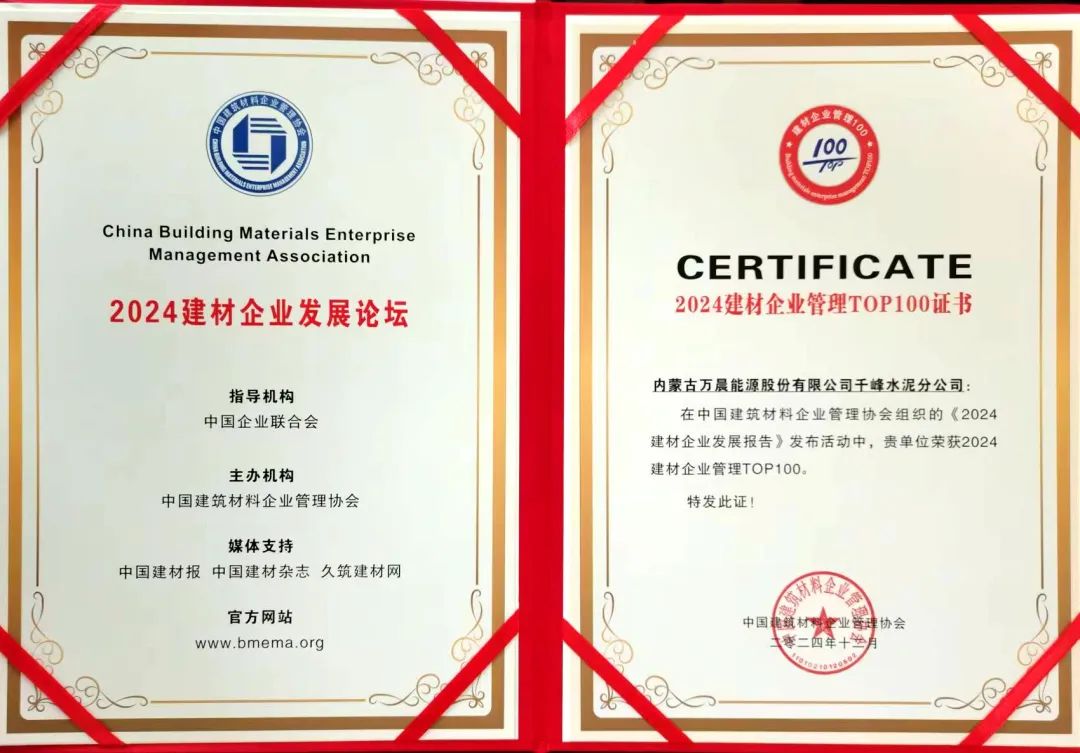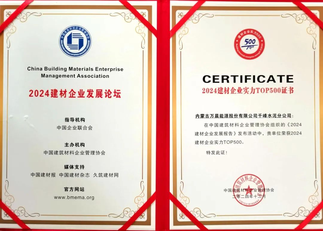 內(nèi)蒙古黃河集團(tuán)旗下千峰水泥榮獲建材企業(yè)實(shí)力500強(qiáng)