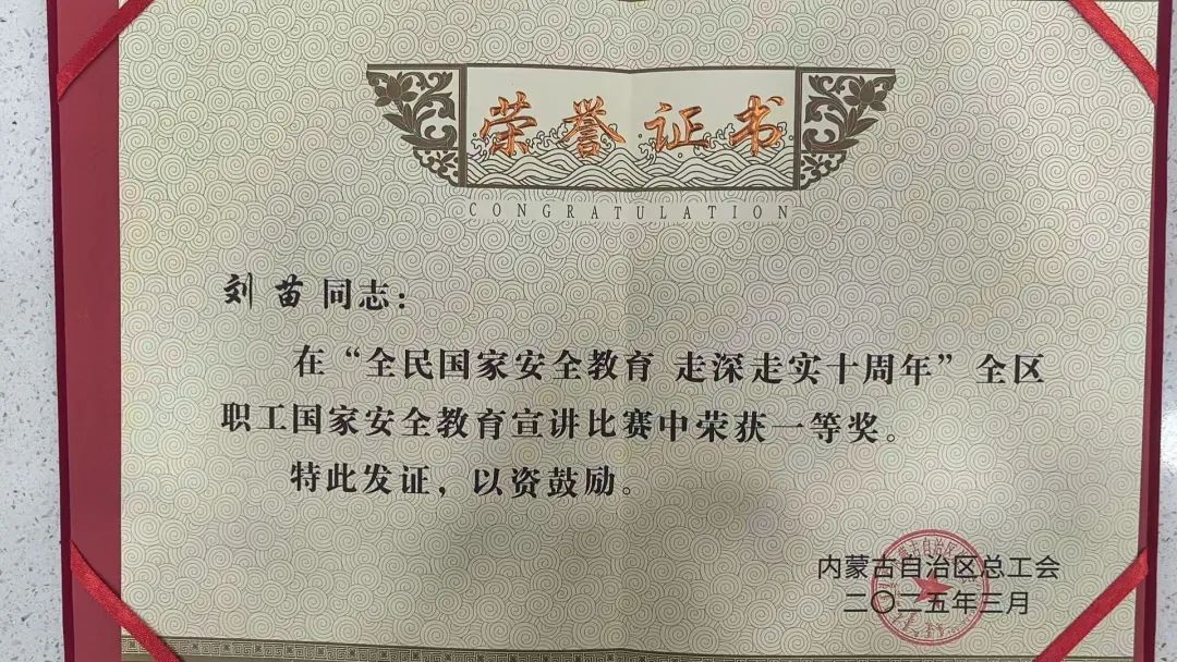 此次獲獎是對劉苗努力的認(rèn)可,更是集團長期重視國家安全教育工作的成果。一直以來,黃河集團通過多種形式開展國家安全教育活動,提升員工的國家安全意識,推動國家安全理念深入人心。